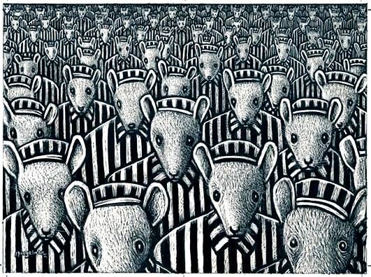 En esta misma línea, merecen especial mención las ilustraciones. Estas son en blanco y negro, de trazo agresivo, casi tosco y responden a una estética expresionista, como manera de retratar la realidad de manera más personal y, tal vez, subjetiva. Al mismo tiempo, permiten realizar un mejor reflejo de la crueldad humana que domina la obra.