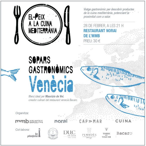 Organizado por el Museo Marítimo de Barcelona y el Restaurante Norai (que está en las instalaciones del Museo Marítimo en las Dressanes), la iniciativa cuenta con la colaboración y patrocinio de la DO Penedès, la revista CUINA, Cap a Mar y La Platjeta de pesca sostenible, así como los restaurantes invitados a cada cena. El precio de la cena será de 30€ y todos aquellos interesados en participar, pueden hacer su reserva poniéndose en contacto con el restaurante Norai al 666.91.99.98.